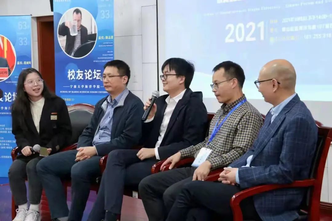 建校35周年之际回到母校,由衷表达了学院今天取得的成就,离不开全体海洋人的共同努力,由一代代宁大人共同凝练的“实事求是、经世致用”的校训在每一位海洋人身上继承、丰富和发展。三位校友代表分别作了精彩发言。